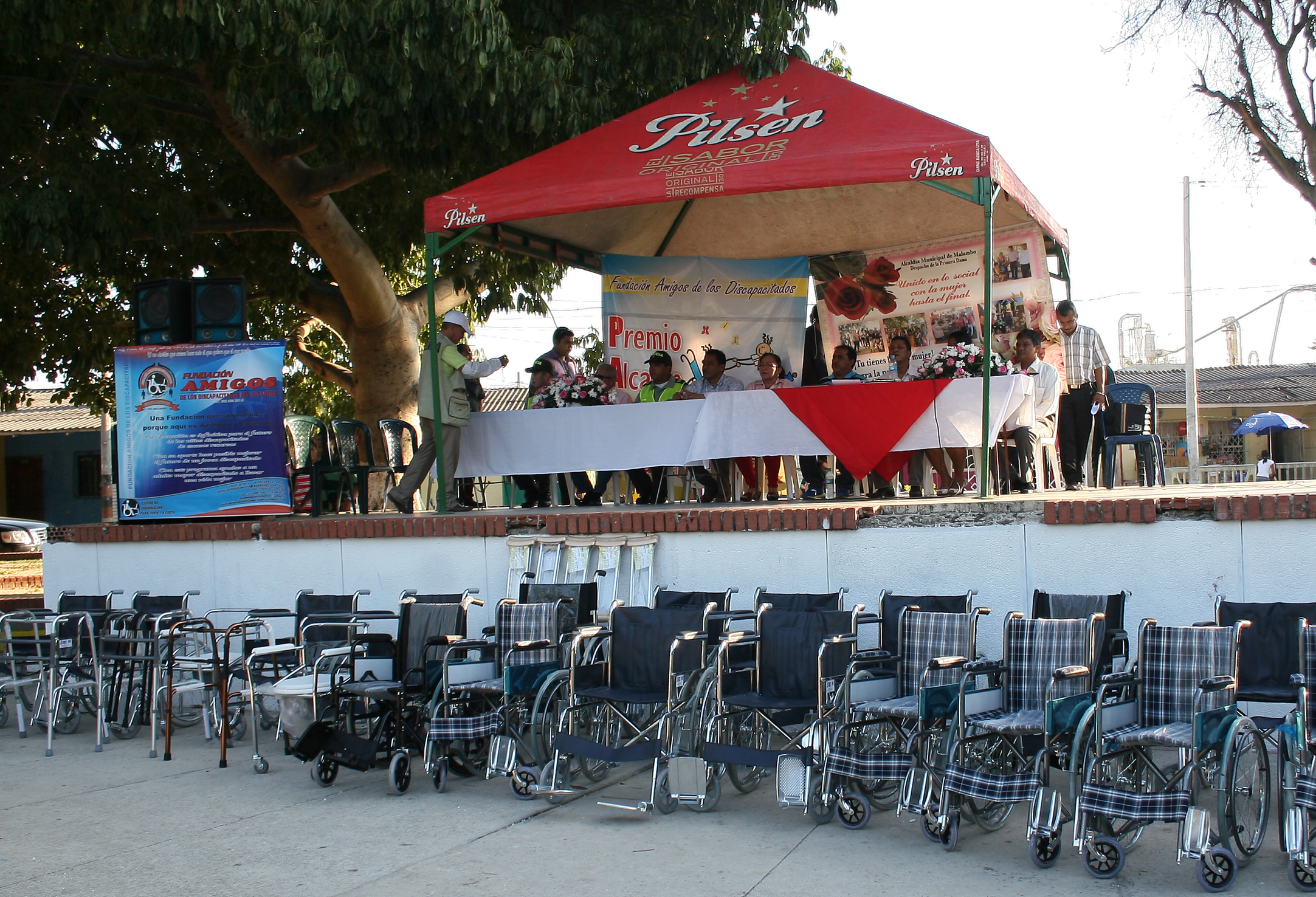 Estrenamos el premio con el Alcalde del municipio de Malambo, Víctor Escorcia Rodríguez, en el marco de una entrega de cuarenta (40) ayudas técnicas, que incluyeron veintiún (21) sillas de ruedas, cinco (5) pares de muletas, cinco (5) bastones, cinco (5) caminadores, dos (2) bastones para invidentes y dos (2) ayudas sanitarias portátiles.