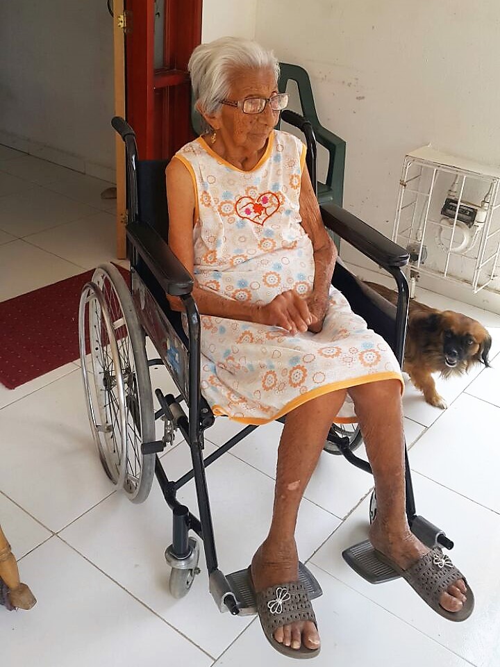Isabel Valencia es una hermosa abuelita de 81 años que debido a su avanzada edad y a sus quebrantos de salud necesitaba de firma urgente una silla de ruedas. Y cuando en INCLUSOCIAL recibimos la solicitud de ayuda, de inmediato contactamos a varios empresarios Barranquilleros humanitarios para que se sumaran a esta noble causa, y como siempre lo hacen de inmediato aportaron generosamente para poder donarle a Isabel su anhelada silla.
