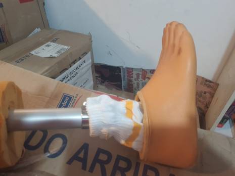 Gracias a la generosidad de la hija de un amputado fallecido, que nos había donado la prótesis de su padre, contábamos con el pie y la varilla de titanio, por tanto, lo único que nos faltaba era el socket o encaje del muñón. Aquí fue fundamental la ayuda de la Dra. Deicy Olarte quien gestionó esta parte, los tiquetes de Avión y la estadía de Arquimedes en Barranquilla.